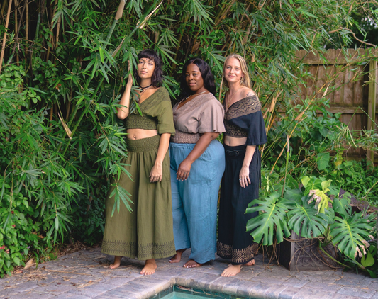 Desert Rose Block Print Flared Crop Top