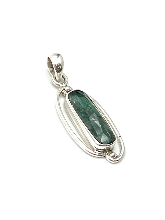 Silver Double Wire Green Kyanite Pendants