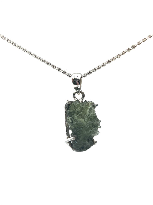 Sterling Silver Raw Vitavin Moldavite Pendants