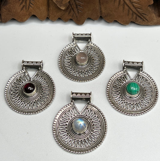 Round Shield Gemstone Pendants