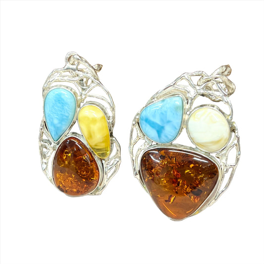 Sterling Silver Tri Gemstone Amber Pendants