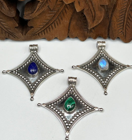 Swirl Shield Gemstone Pendants