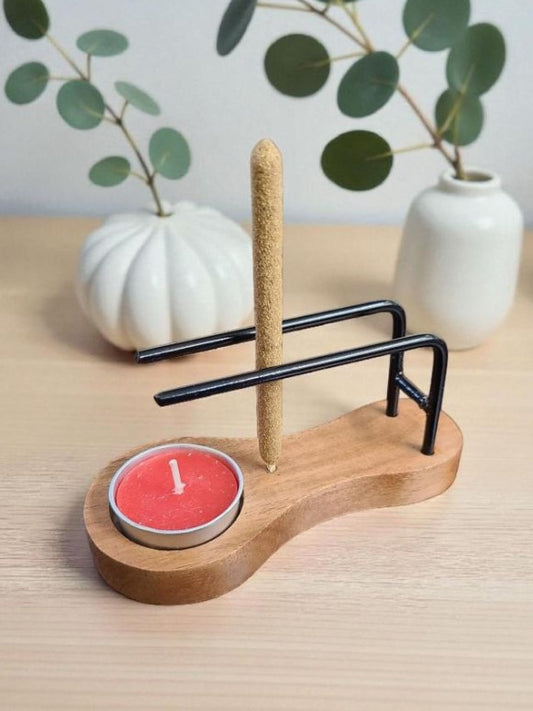3-in-1 Wooden Sage Burner, Candle Holder & Incense Burner