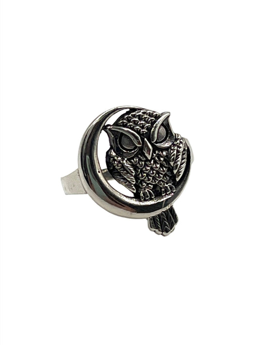 Sterling Silver Owl on Moon Ring