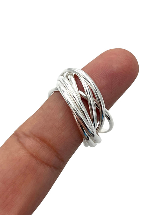 Sterling Silver Thin Seven Band Roll Ring