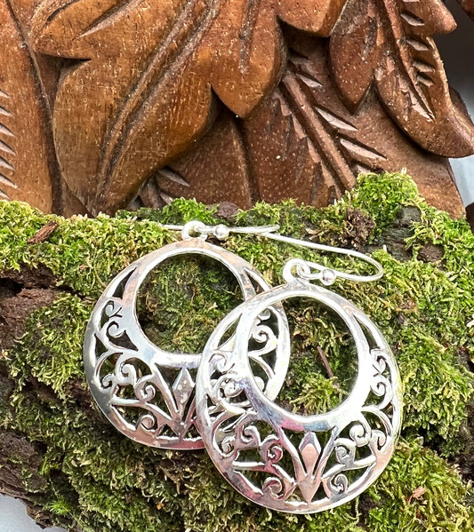 Sterling Silver Swirl Shield Earrings
