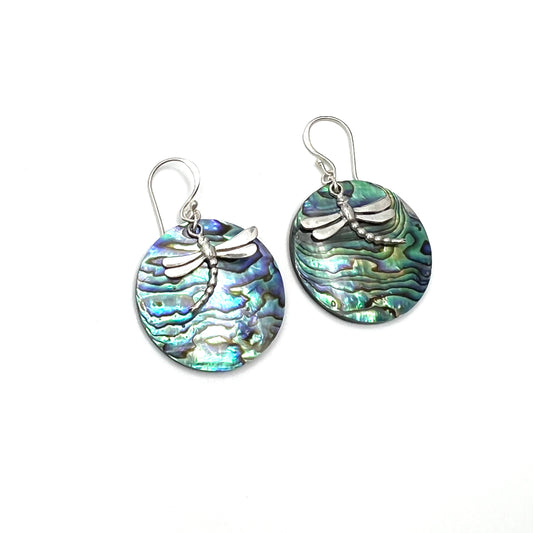 Sterling Silver Dragonfly Abalone Earrings