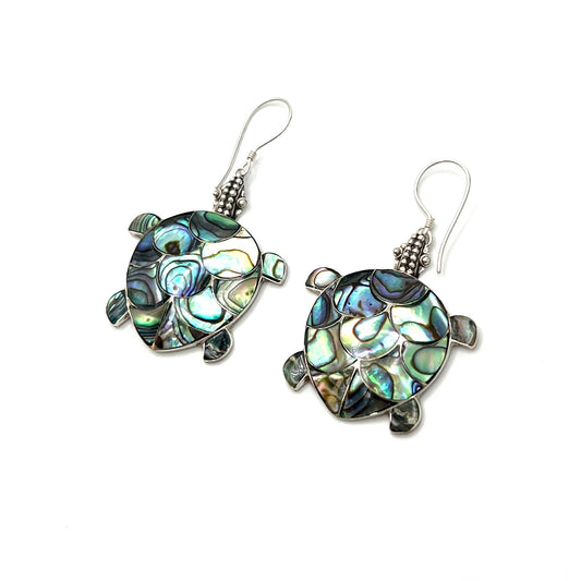 Sterling Silver Sea Turtles Abalone Earrings