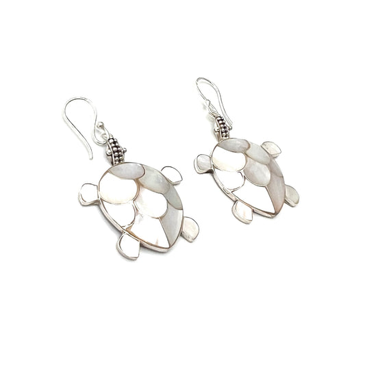 Sterling Silver Mother of Pearl Sea Turtle Earrings