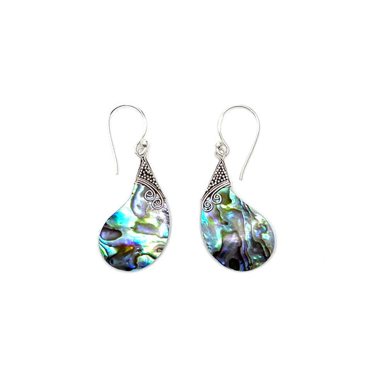 Sterling Silver Teardrop Filigree Abalone Earrings