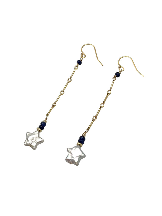 Star Pearl & Sapphire Gold Filled Earrings
