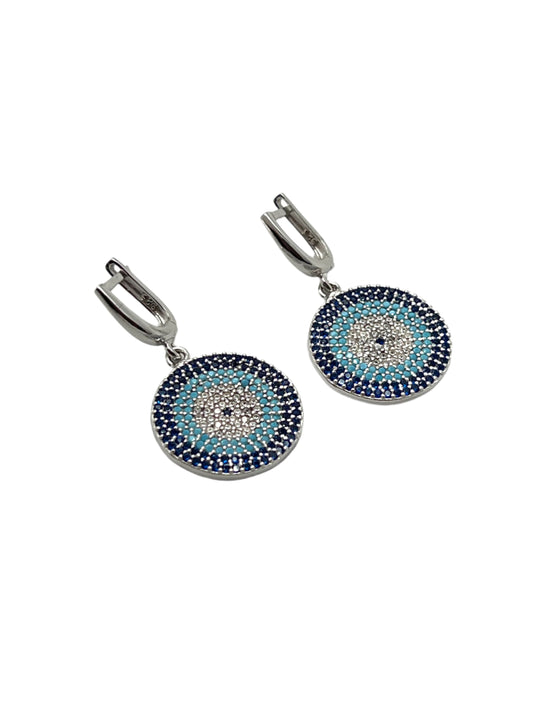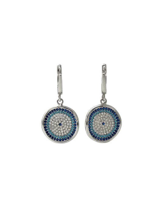 Silver Evil Eye Flat Dangle Earrings