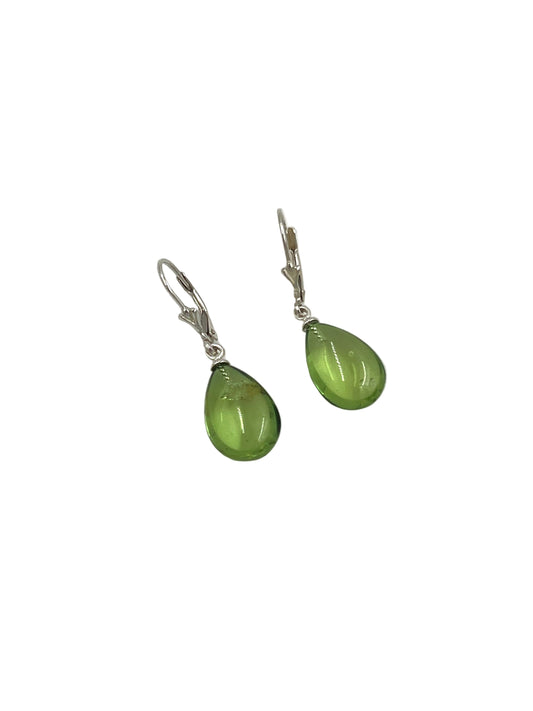 Silver Green Amber Earrings
