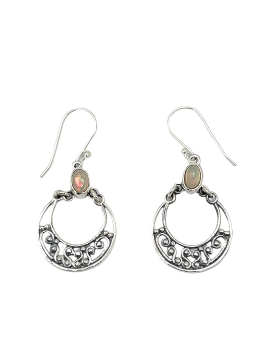 Sterling Silver Ethiopian Opal Filigree Earrings