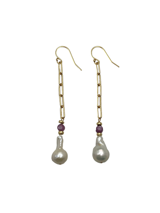 Pearl & Star Ruby Gold Filled Earrings