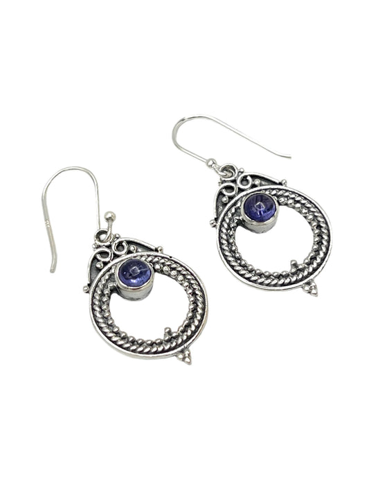 Sterling Silver Tanzanite Circle Twist Earrings