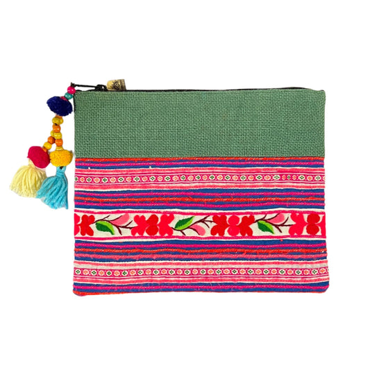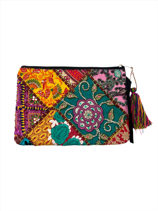 Rectangle Recycled Hand Embroidered Rajasthani Zipper Bag | Tassel
