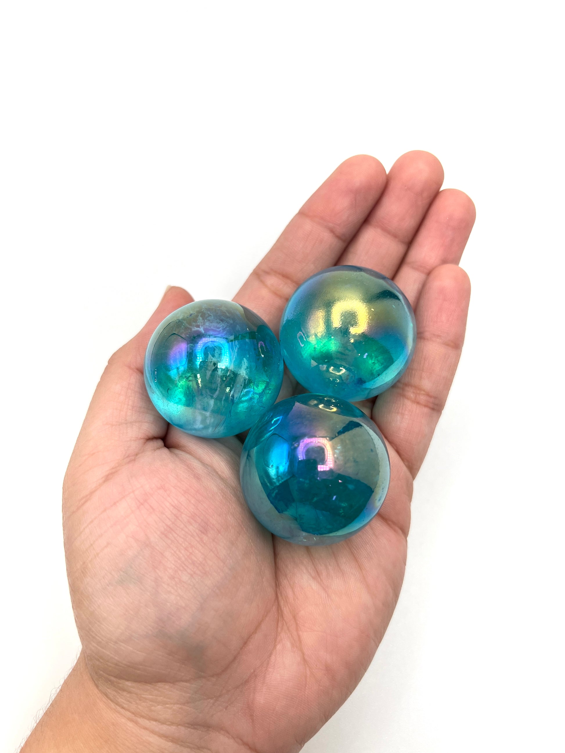 Aqua Aura Quartz Crystal Spheres