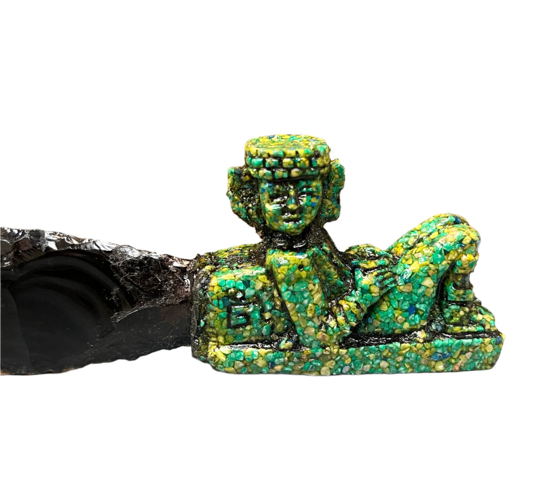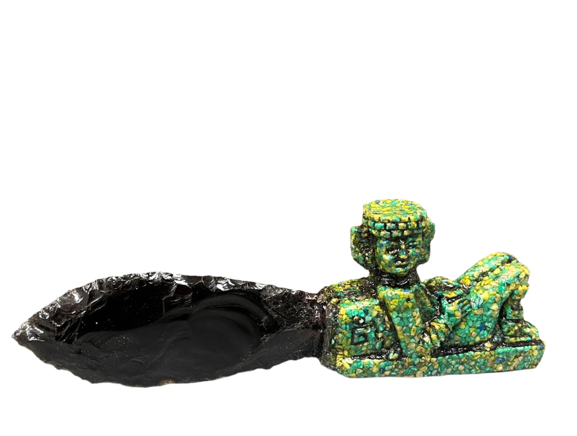 Today each incredible replica is still hand made in their native home of Mexico. From the hand flaked, genuine obsidian blades to the important figures adorning the stabilized malachite handles they are as close as you can get to the true ceremonial knives made for high priests and their rites of human sacrifice. This is a rare find and the quantities are limited.
