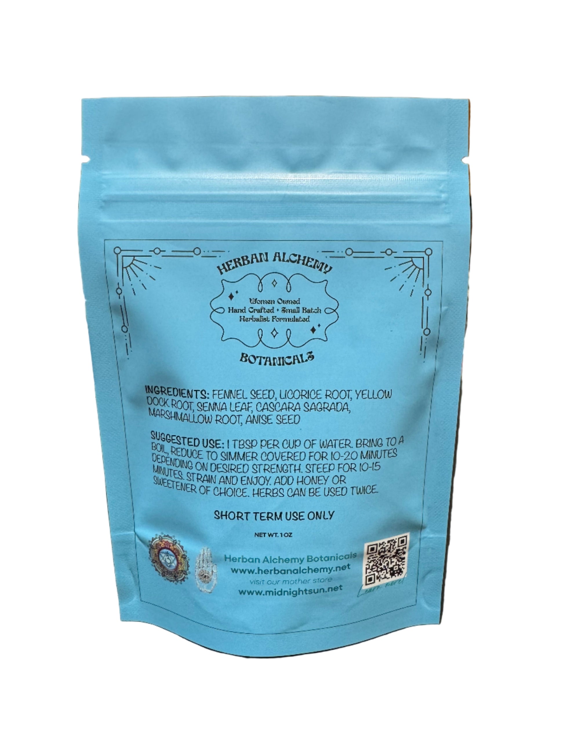 Ingredients: (All Organic) Fennel Seed, Licorice Root, Yellow Dock Root, Senna Leaf, Cascara Sagrada, Marshmallow Root, Anise Seed