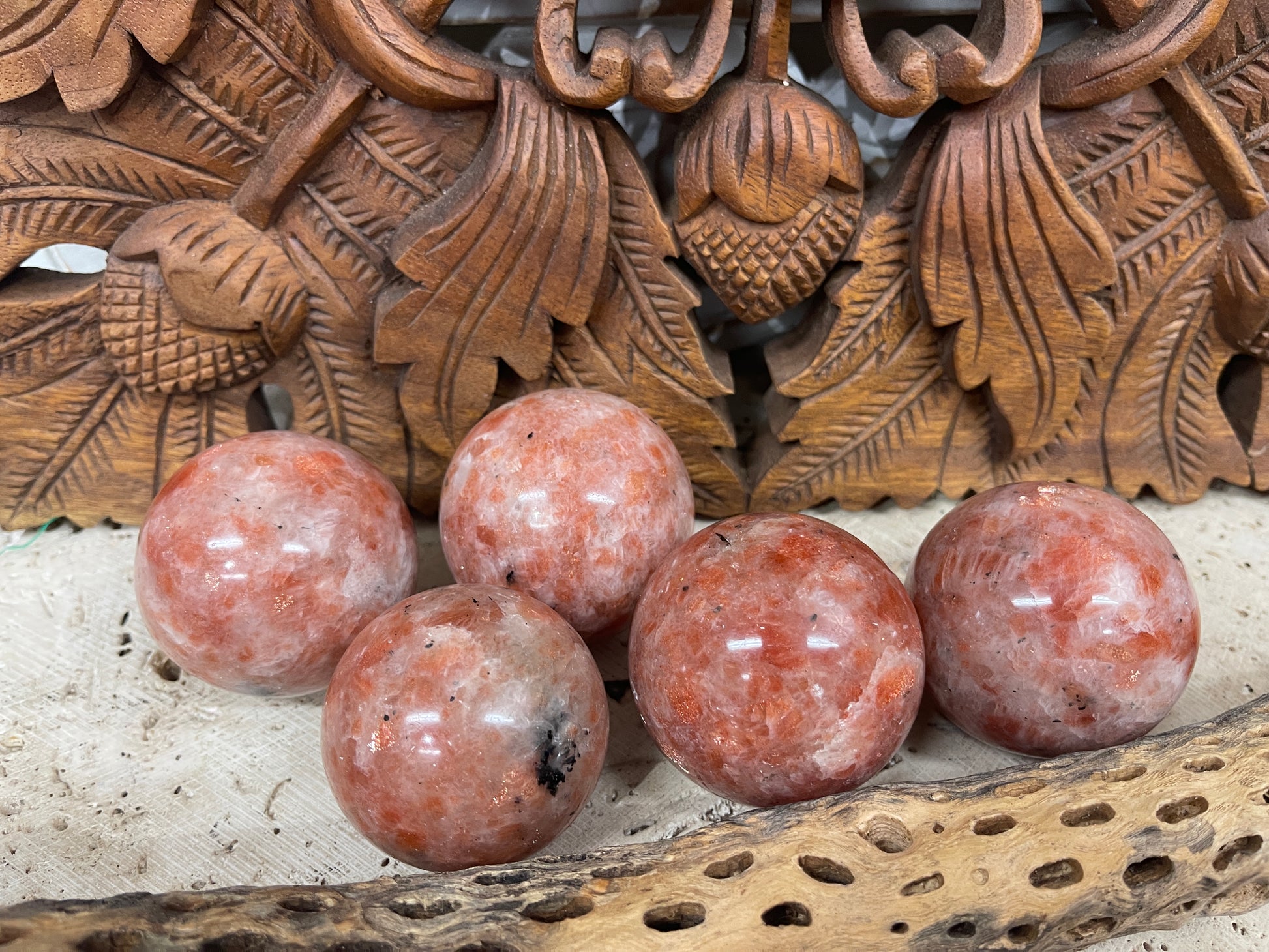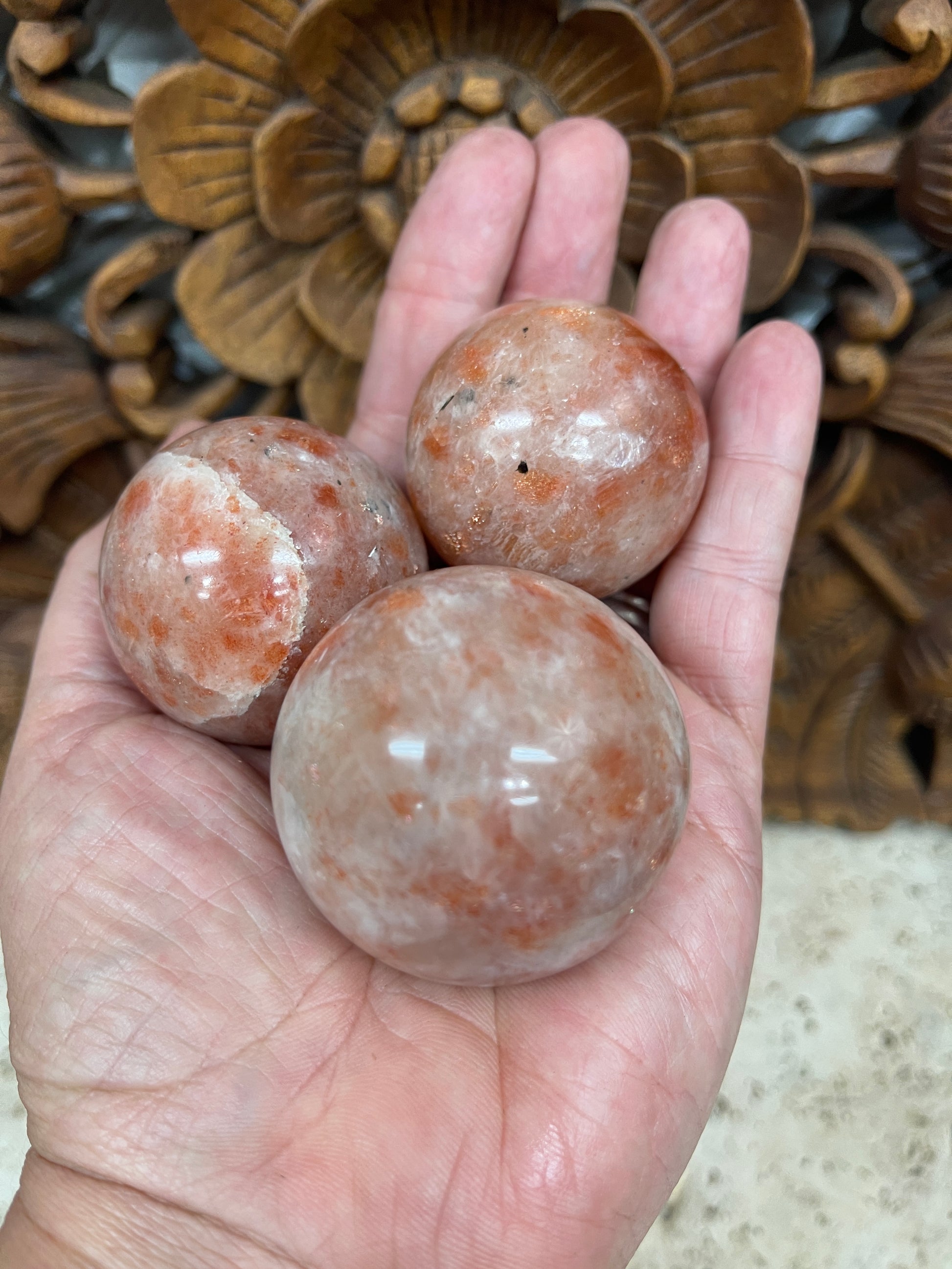 Carved Sunstone Spheres from India
