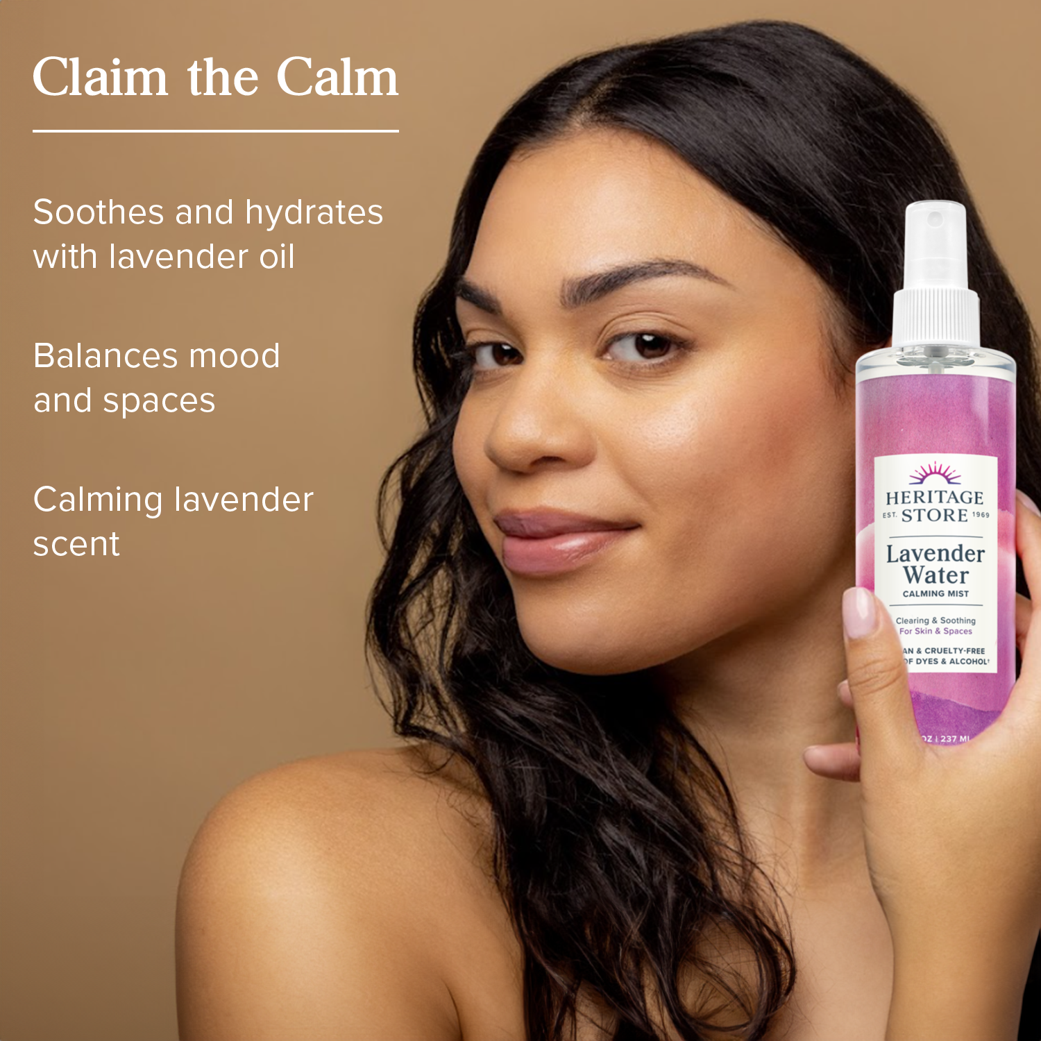 Soothe and refresh your skin and mood and help calm your senses. Heritage Store Lavender Water Calming Mist does it all with just two ingredients – lavender oil and Vor-Mag Water – water that has been vortexed and magnetized to raise its energy and vibration. Gentle enough for all skin types, our Lavender Water hydrating mist restores moisture and softness and helps refresh your skin. Spray a little on your hair for a soft lavender fragrance, or use it as an all-over body mist. Lavender’s delicate, floral scent is thought to have a calming effect on both body and mind. Add some to your bath, mist it all around you before a meditation or yoga session, or spray it on your pillow at bedtime to help you relax. Vegan and always cruelty free, Lavender Water Calming Mist is made without dyes, alcohol, parabens or phthalates, so it’s good for you and for the planet.
