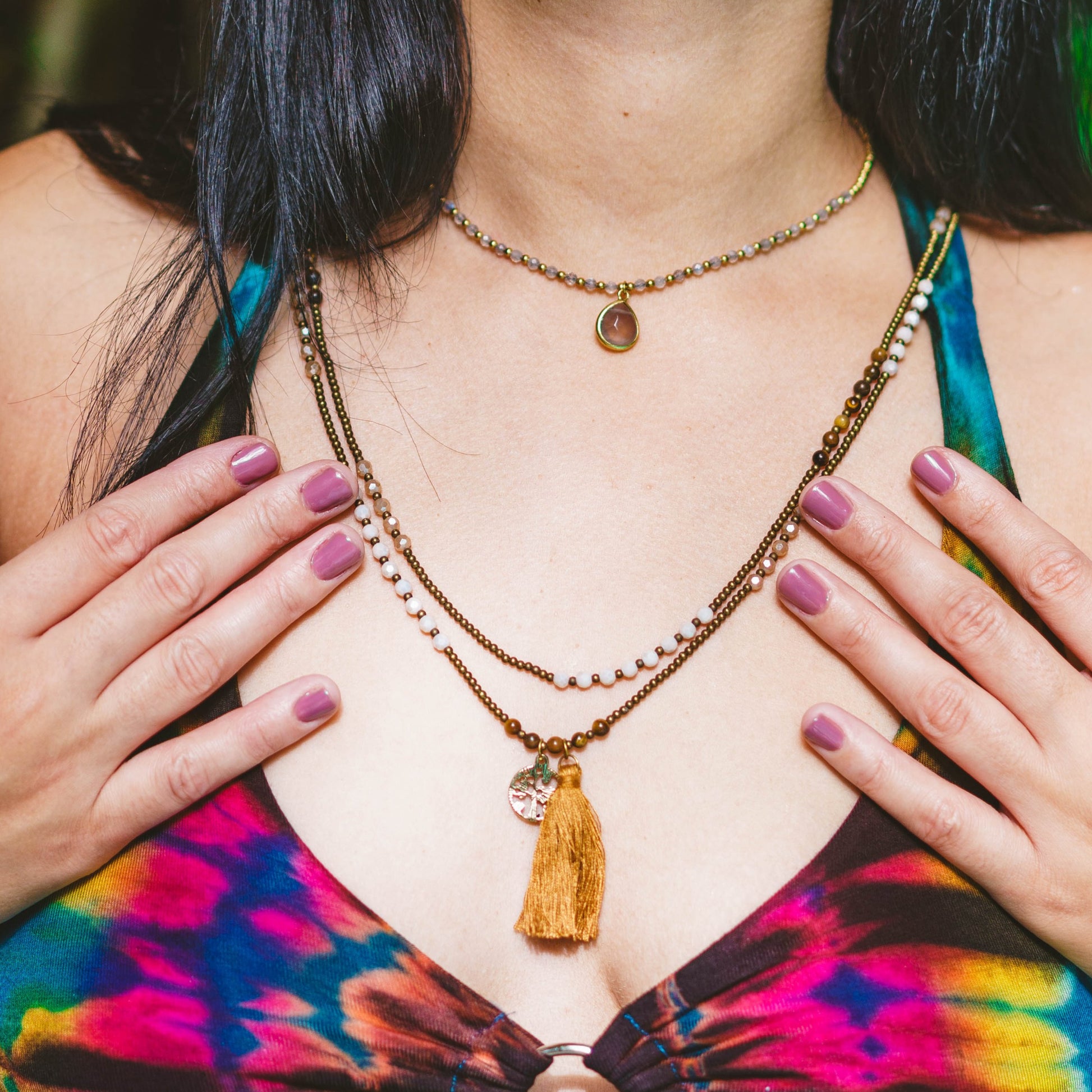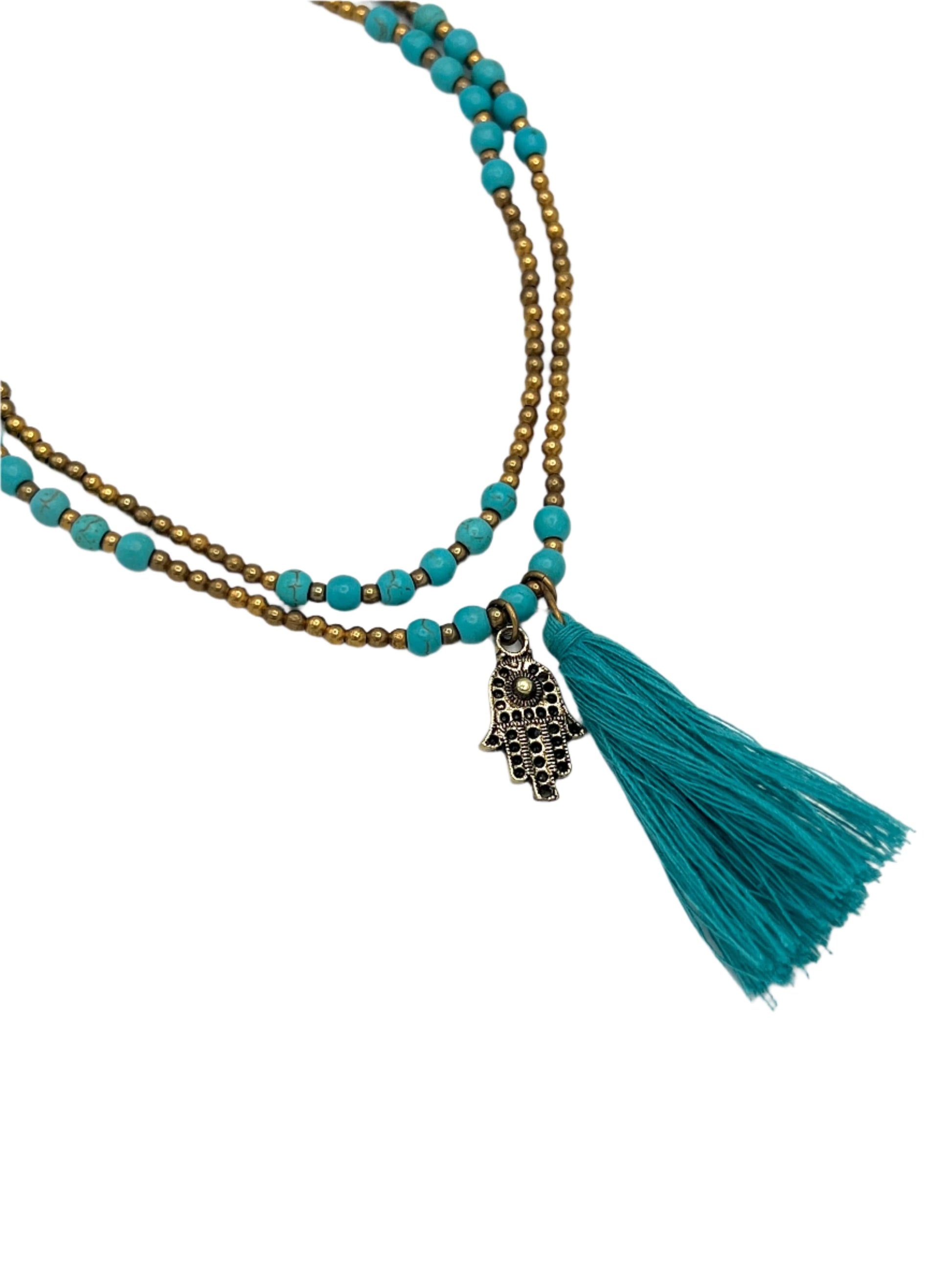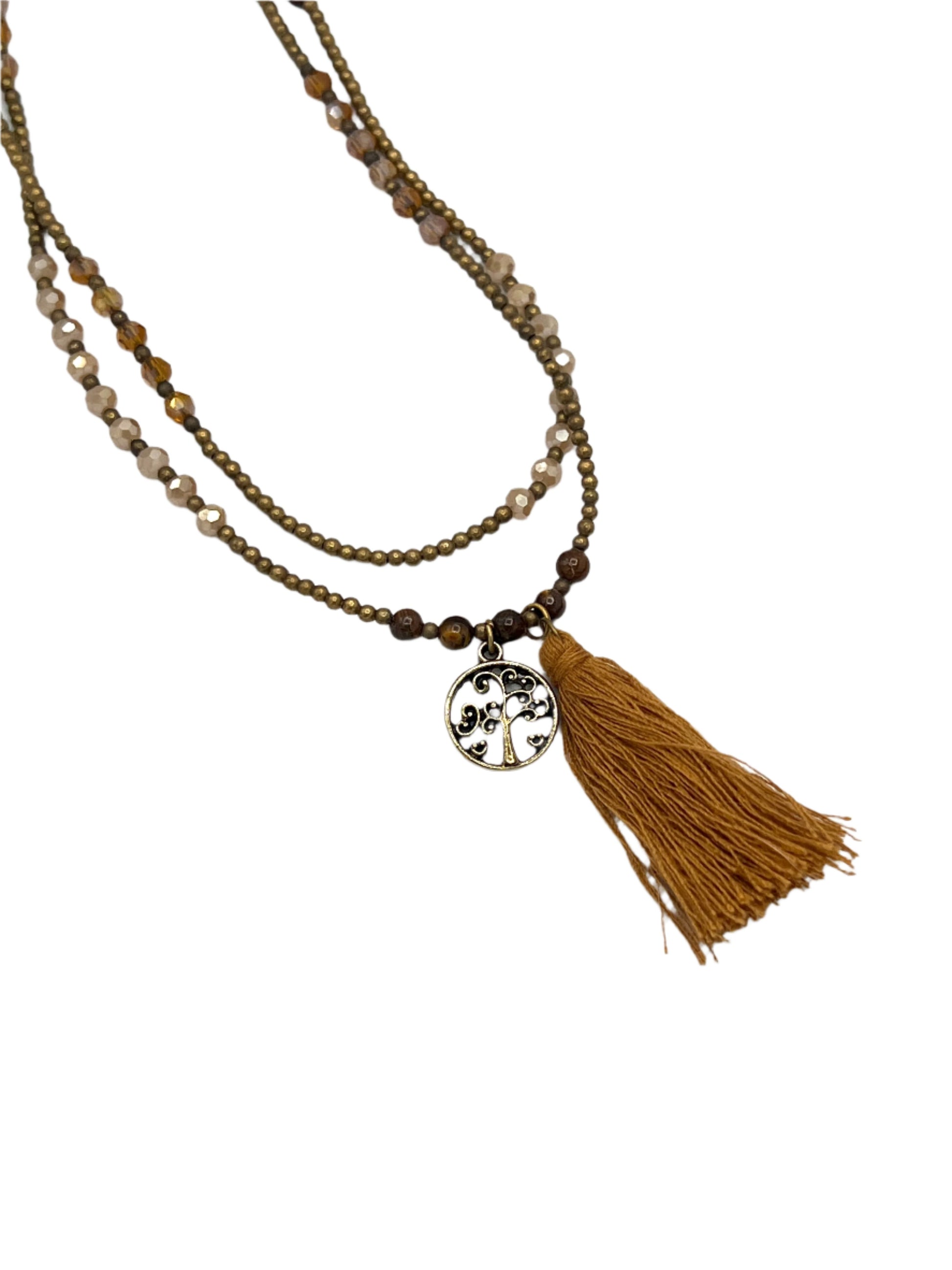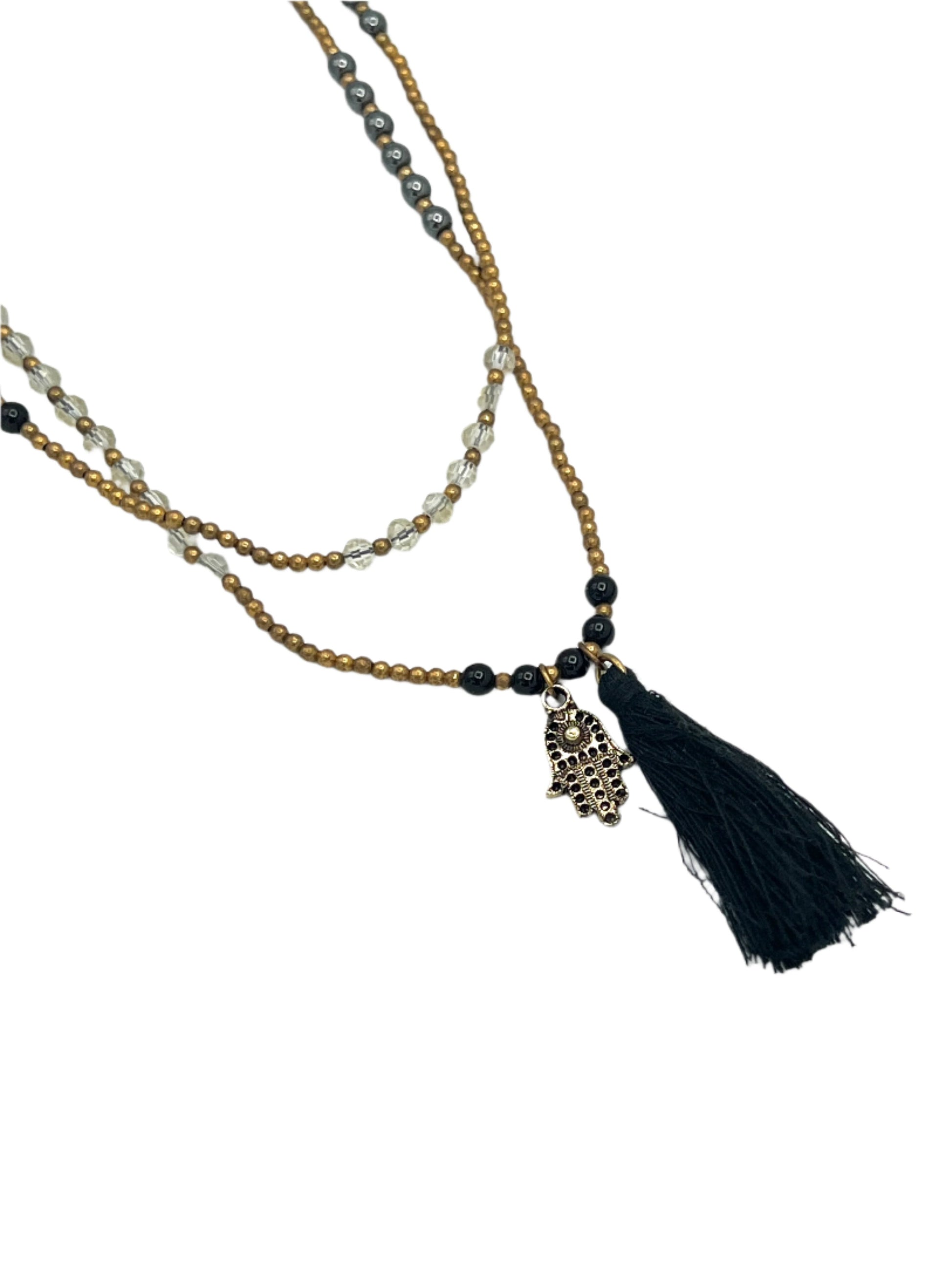 Brass Charm & Tassel Beaded Necklace