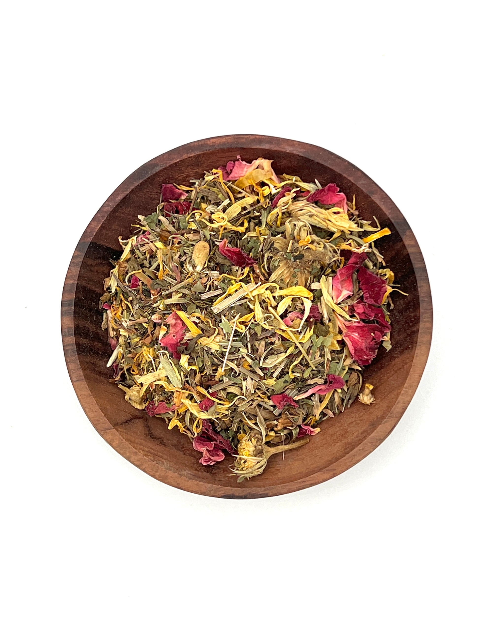 All Organic Ingredients: Cleavers, Red Clover, Calendula, Nettle, Rose Petal, Chamomile, Lemon Balm
