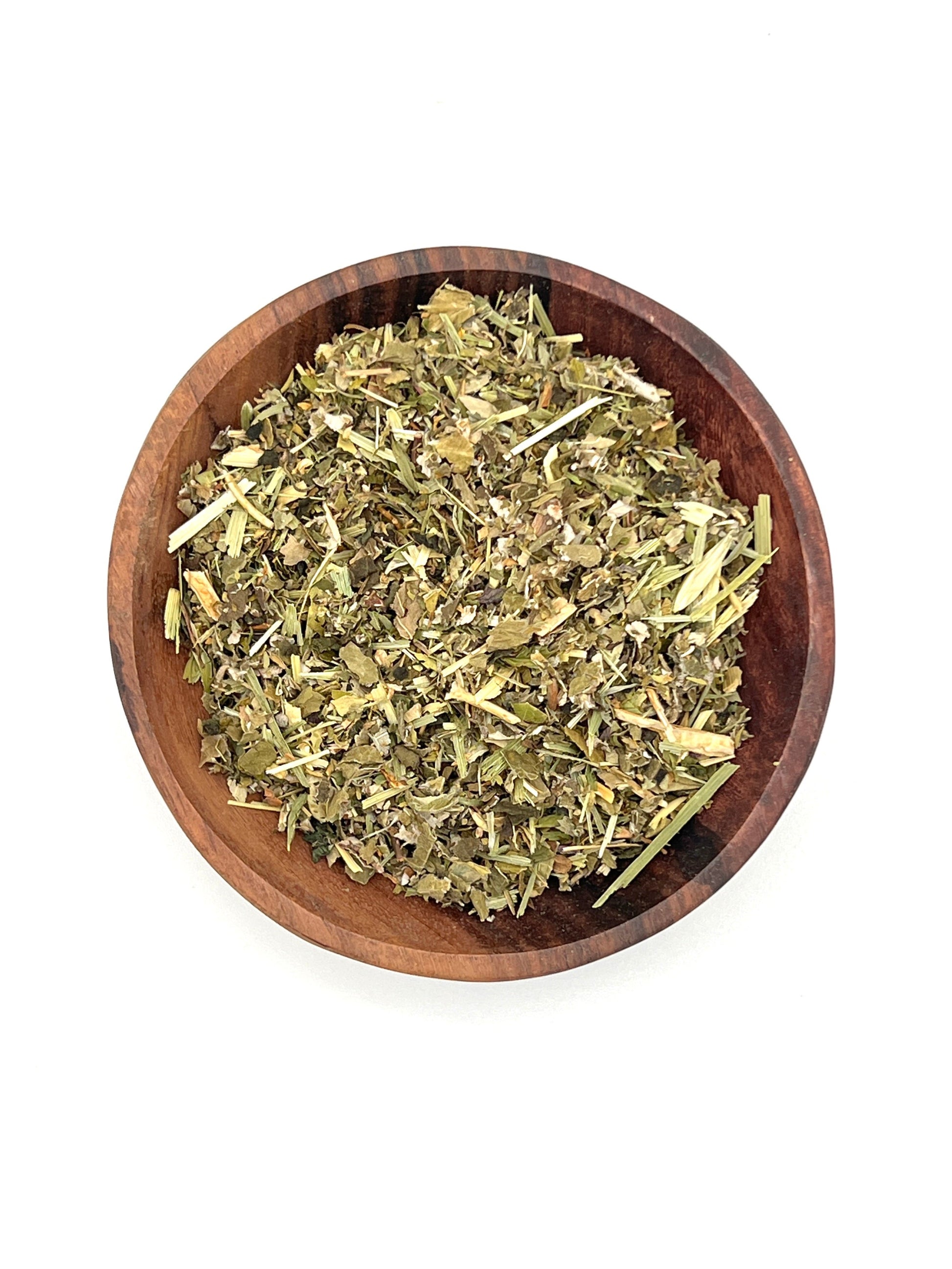 Red Raspberry Leaf, Nettle, Peppermint, Oatstraw, Alfalfa, Strawberry Leaf