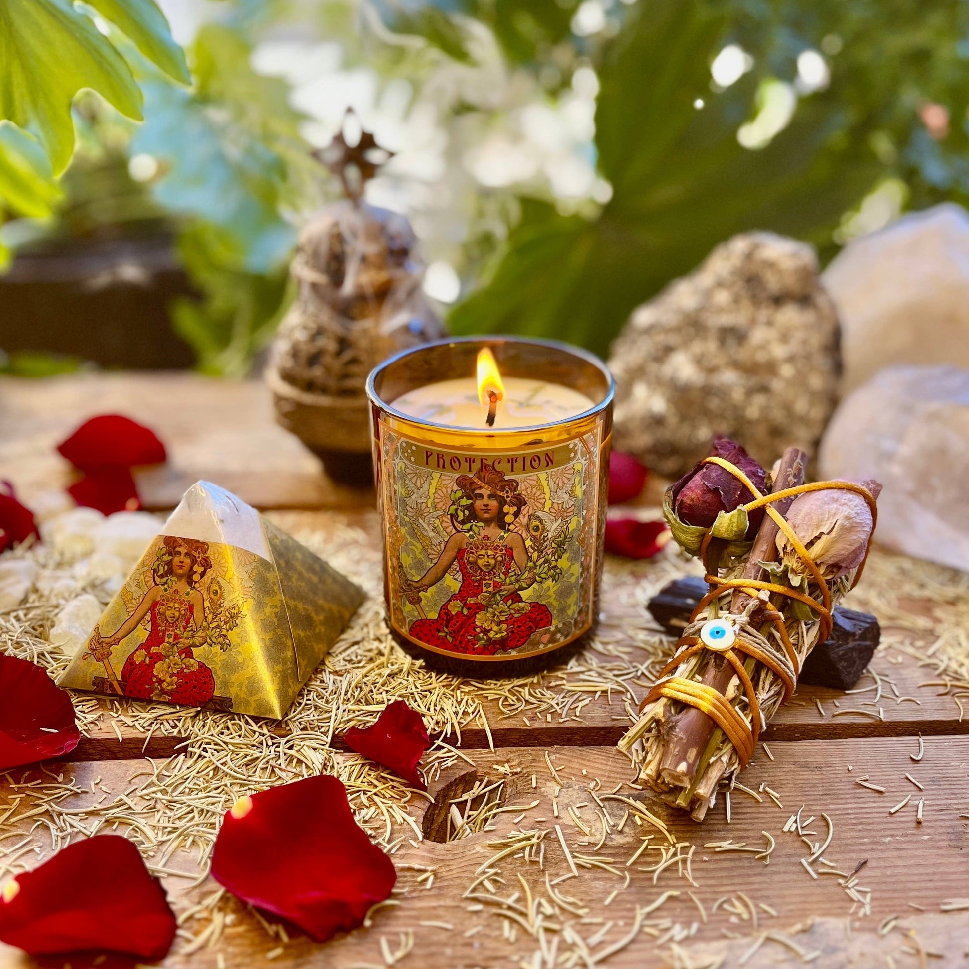 Ingredients: Organic shea butter, organic coconut oil, non-gmo corn starch, citric acid, sodium bicarbonate, dendritic salt, organic botanicals, organic essential oils: Copal & Rosemary, encasing a crystal charged under the full moon.