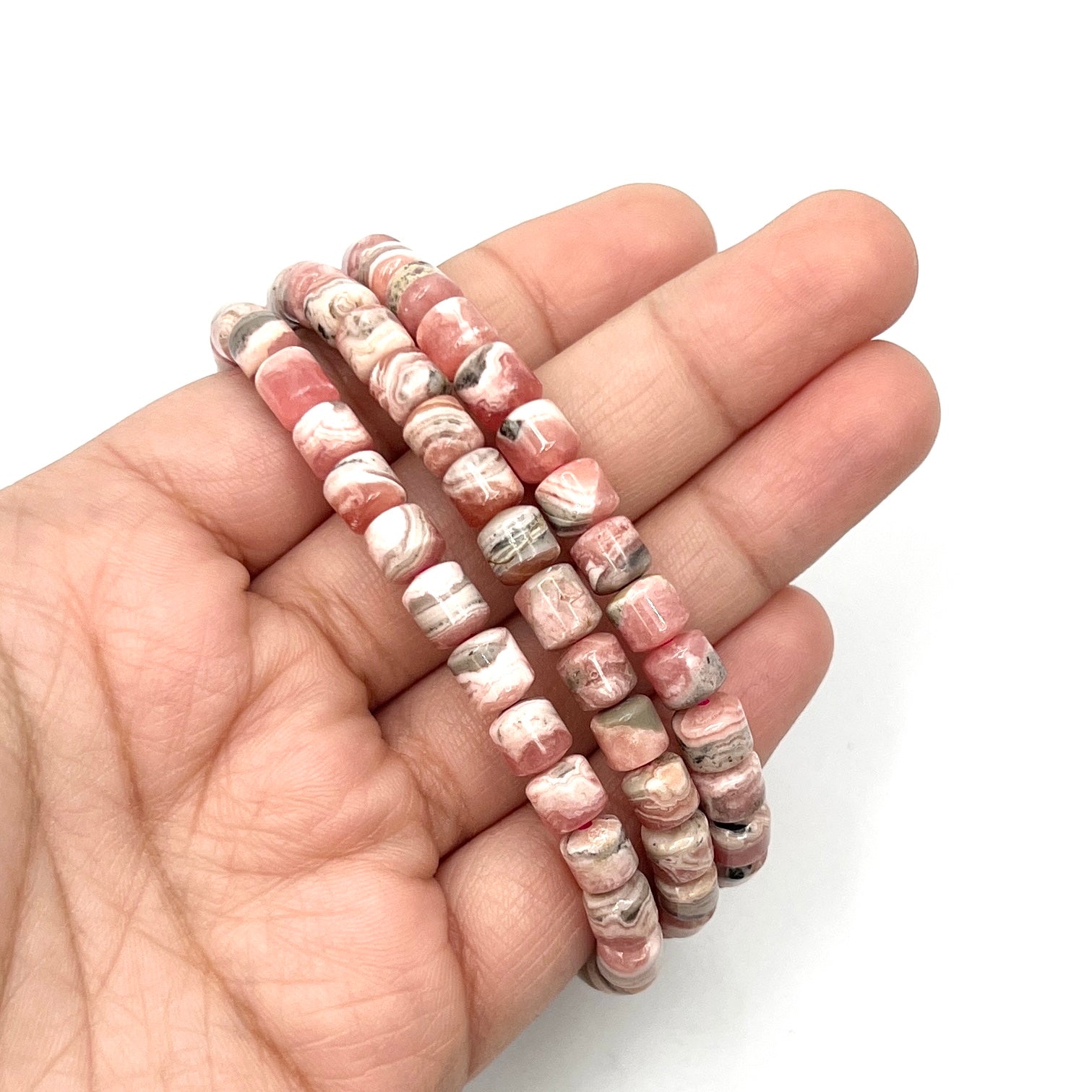 Rhodochrosite Tube Stretchy Bracelets