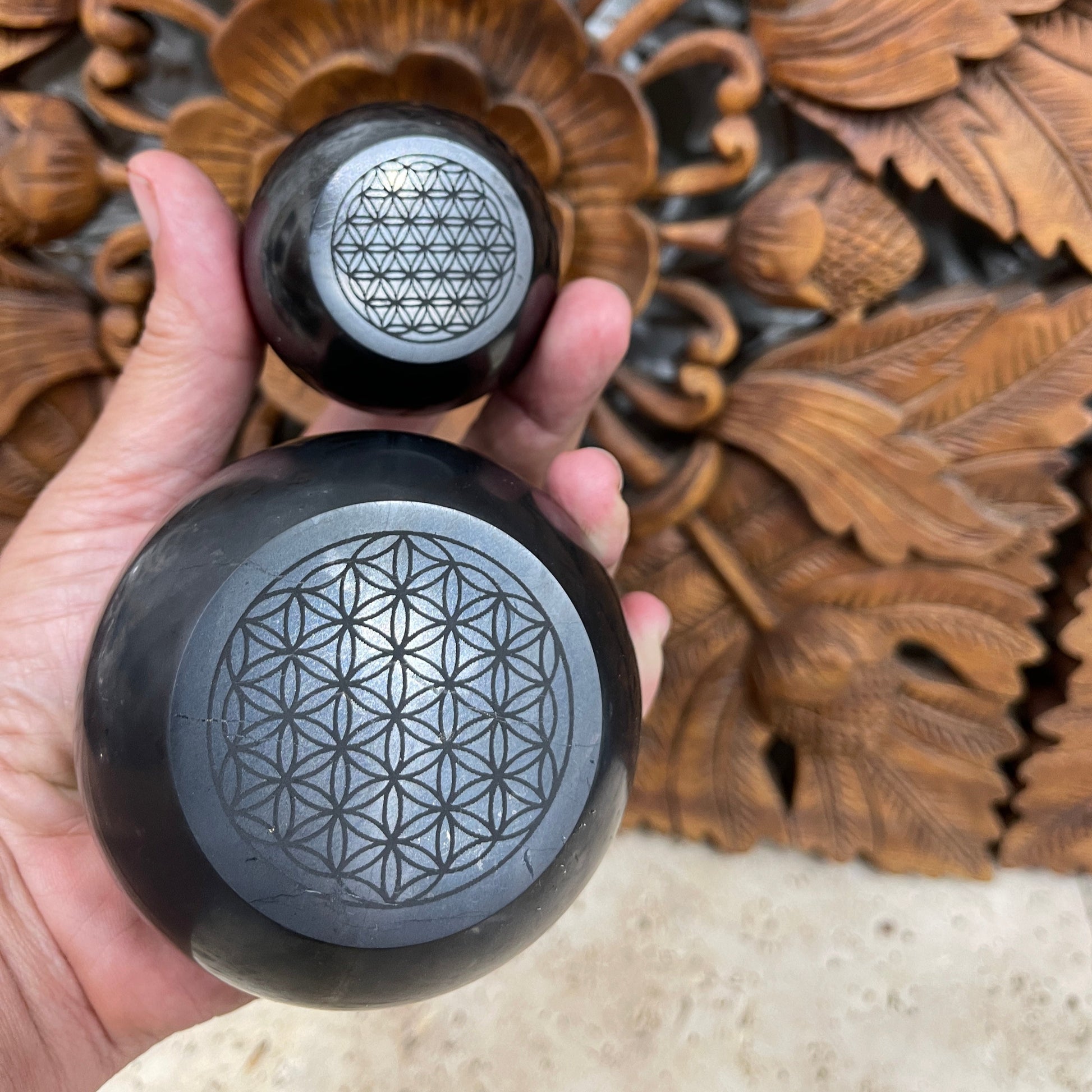 Shungite Flower of Life Engraved Spheres