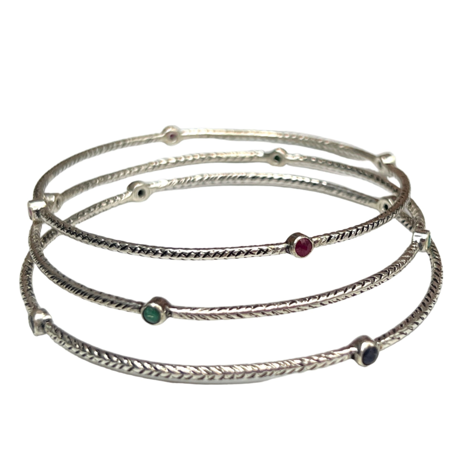 Sterling Silver Stone Bangle