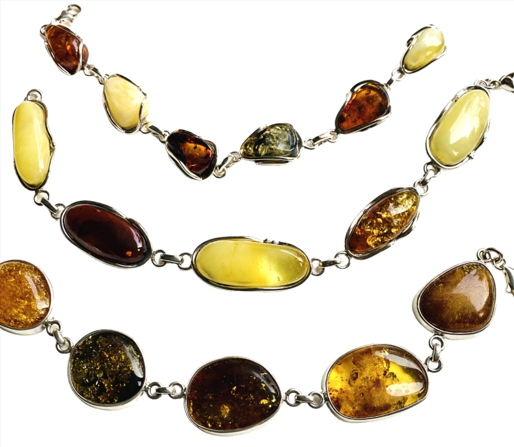 Sterling Silver Multi Color Amber Bracelets
