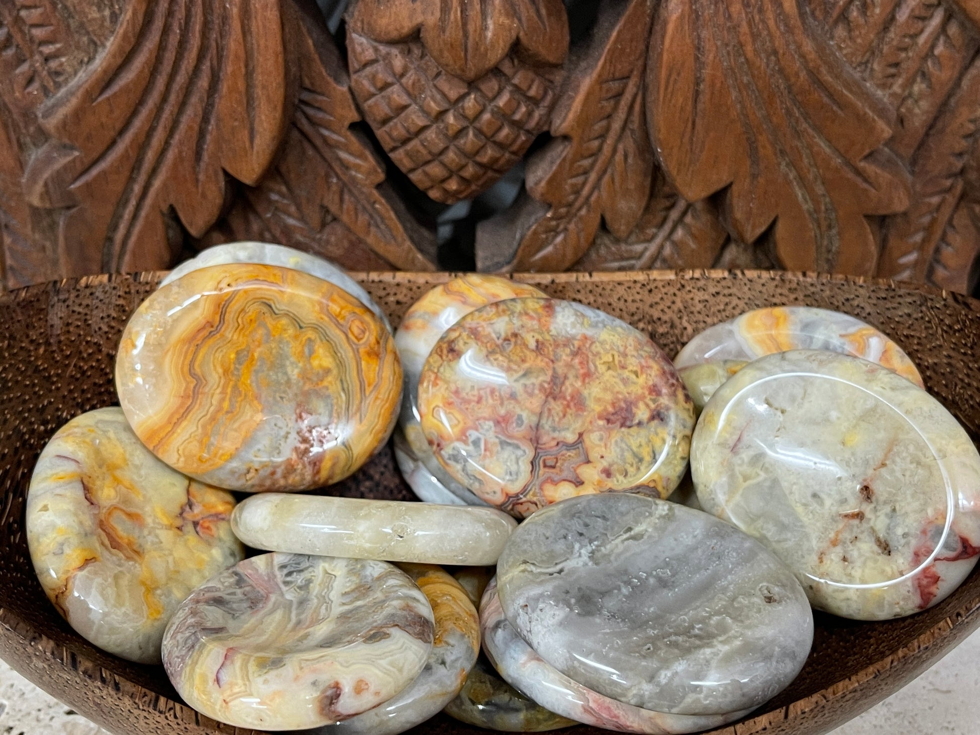 Yellow Crazy Lace Agate Worry Stones